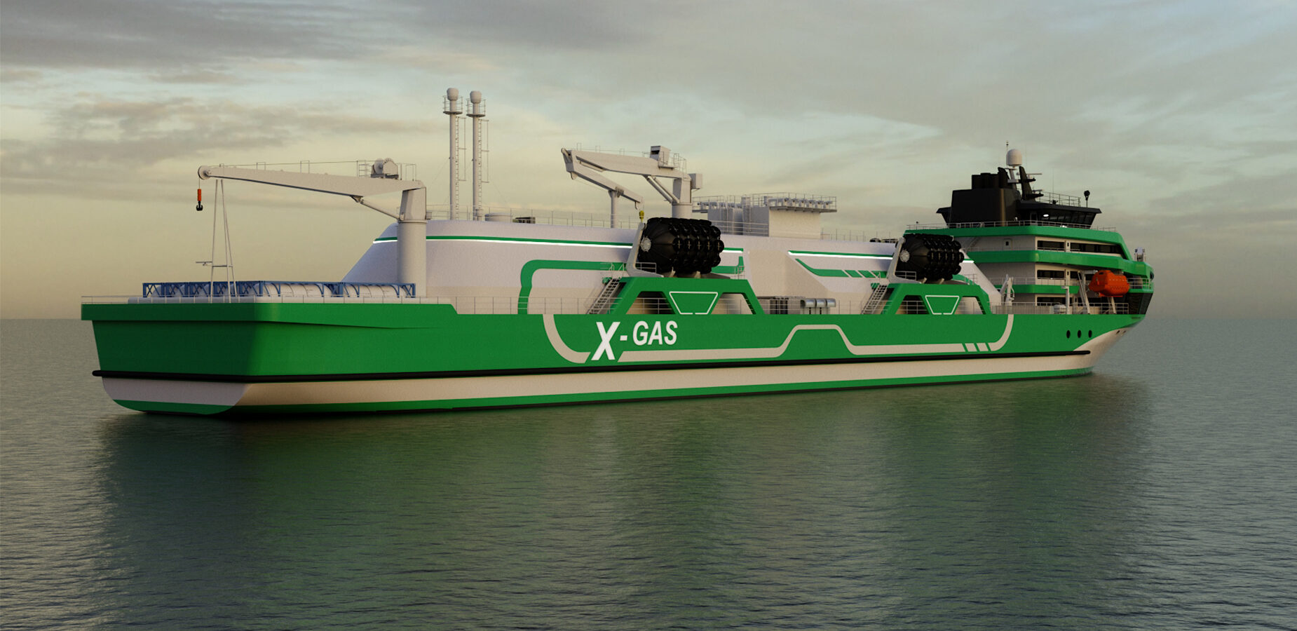 9000 m3 Tanker is a part of a X-Gas project aiming to lead the charge in next generation sustainable fuel transport and bunkering. X-gas project consist of series of innovative and unconventional X-GAS bunker tankers designed by KNUD E. HANSEN.